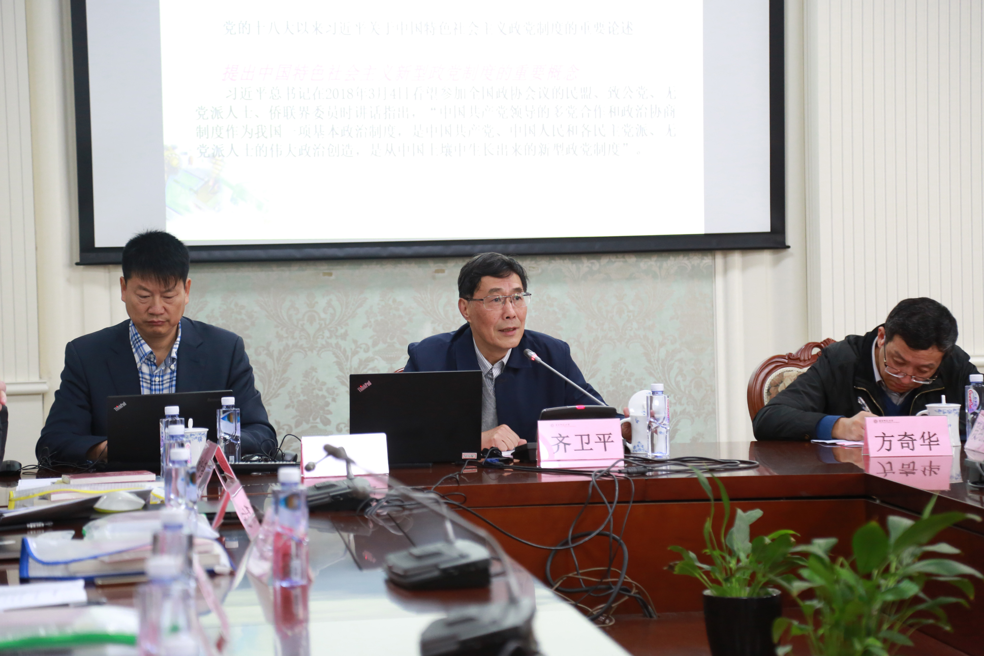 研讨班特别邀请了全国基层理论宣讲先进个人、政治学系教授齐卫平,全国政协委员、校民盟主委、历史系教授章义和分别作“中国特色社会主义新型政党制度”“党外人士如何做好参政议政工作”的专题报告。齐卫平基于自身的研究,从历史和现实的角度,详细阐述了作为内生型的中国特色社会主义新型政党制度形成的必然性、先进性和优越性。章义和结合个人的参政议政经历,以如何反映社情民意为例,提醒大家要明确民主党派的政治身份,时刻关注国家政策方针,做有心人,多调研,积极参政议政。
