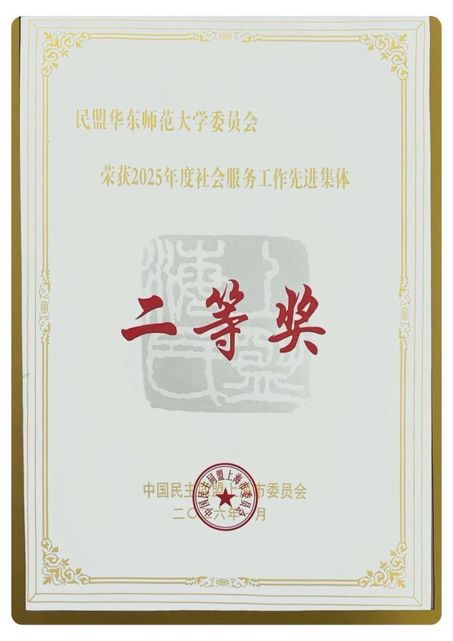 民盟华东师范大学委员会荣获“2025年度民盟上海市委社会服务工作先进集体(二等奖)”。