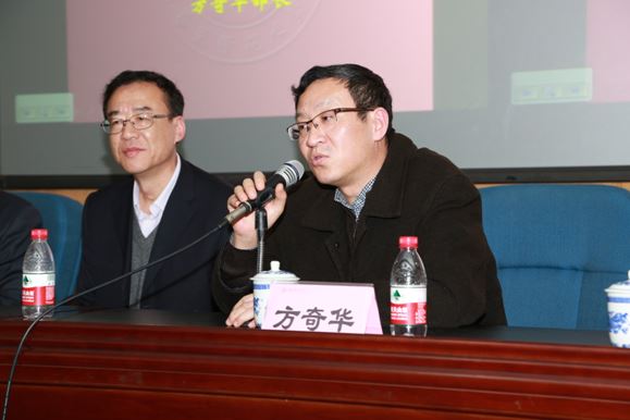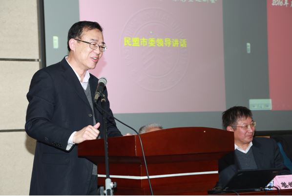 校党委统战部方奇华部长在会上讲了话,他首先肯定了校盟委会一年来在参政议政、社会服务、民主监督、区校合作、盟史研究等方面取得的丰硕成绩;其次肯定了校盟委会在2016年的换届工作以及广大盟员为学校发展、教学、科研、管理等方面作出的贡献;第三,介绍了我校统战工作的新情况。他希望在学校党政领导越来越重视统战工作的大好形势下,校盟委会应该跟校内其他各个民主党派更多地积极互动、联谊交流。最后,方部长向大家致以新年的祝福。