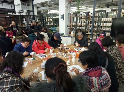 3月18日华东师大民进20余名会员赴“上海大学公共艺术创意中心”观摩学习。首先大家听取了创意中心老师的介绍,“上海大学公共艺术创意中心”是整合上海大学的智力资源和技术特色,为实现“将上海建设成为国际文化大都市和设计之都”和“将文化创意产业打造成为引领和支撑上海新一轮发展重要的支柱产业”的目标而构筑的开放式的知识服务平台;接着手工艺课程老师进行陶瓷、玻璃、首饰等手工艺作品的展示与示范,随后大家在手工艺课程老师的指导下在陶瓷器件上绘画制作了一件自己心仪的作品。