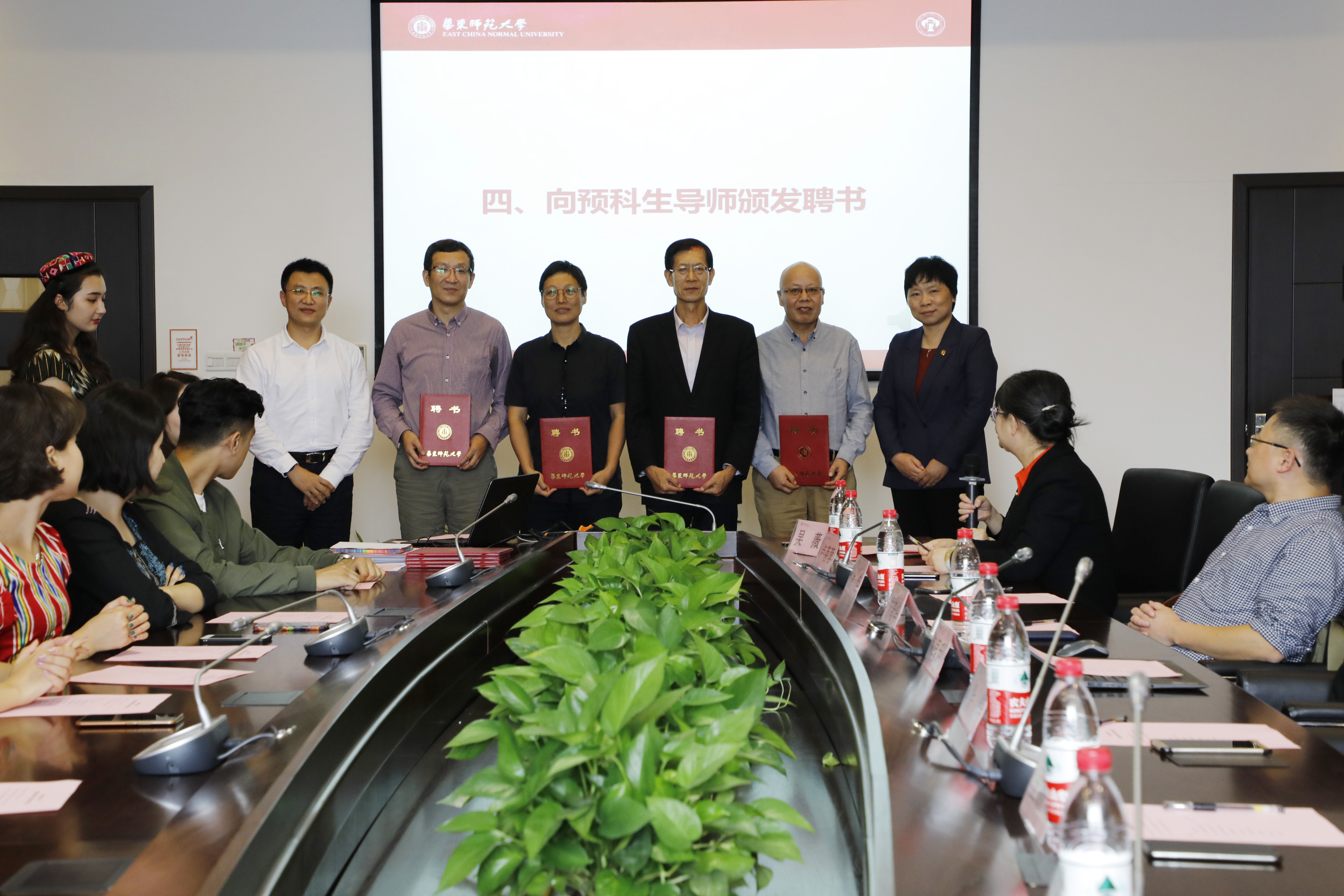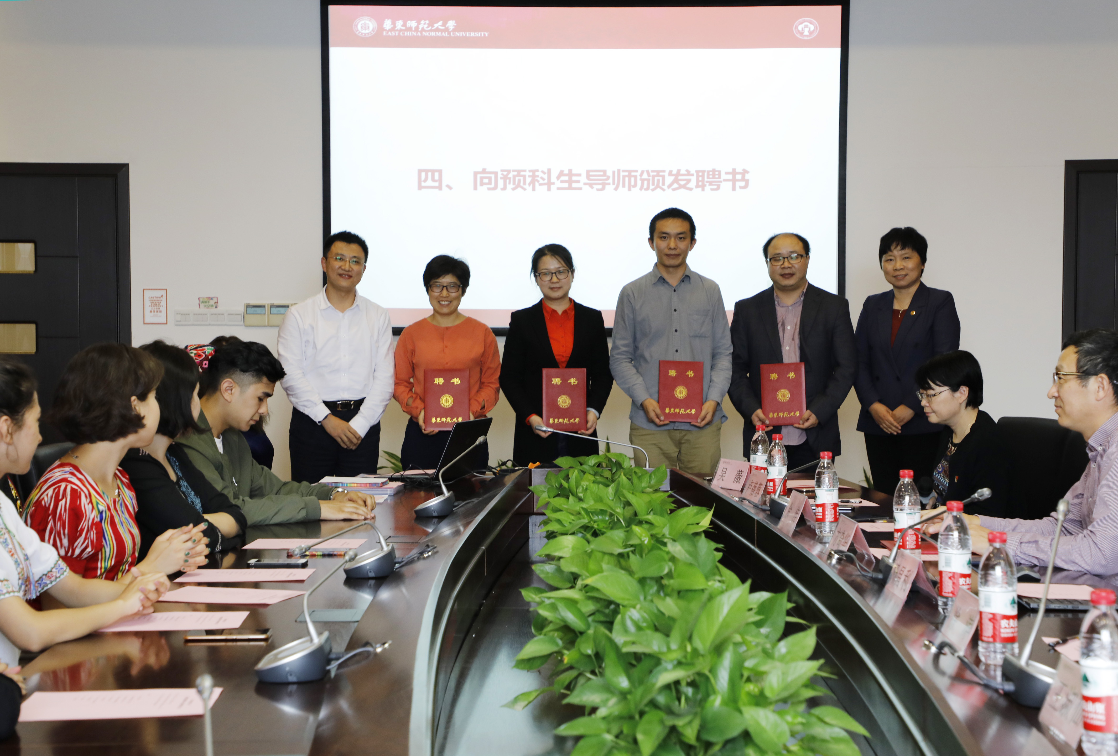 上海市民族宗教委办公室副主任、市民族联副会长兼秘书长徐涛和校党委副书记杨昌利为八位导师颁发聘书