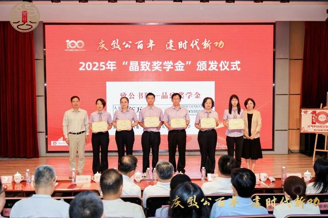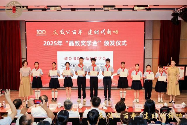 在2025年度“致公书院——晶致奖学金”颁发仪式上,晶城中学校长孙强宣读了获得“晶致园丁”奖和“晶致少年”奖的师生名单,与会领导向获奖师生颁发了证书。