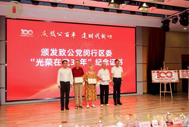 活动向老党员代表颁发致公党闵行区委“光荣在党30年”纪念证书,号召全体党员学习老党员的优良作风和忠诚奉献精神。